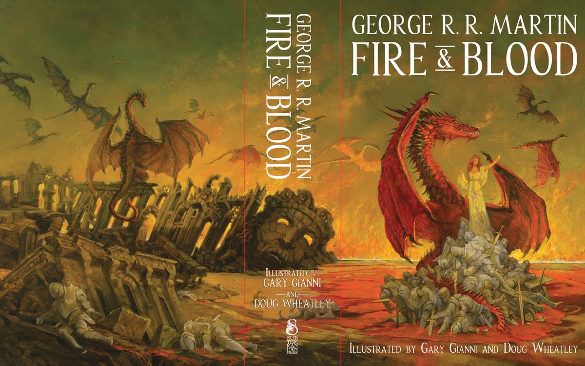 GRRM napisał na Twitterze: [Check out Brazil’s FIRE & BLOOD cover by the talented Jean-Michel Trauscht https://www.artstation.com/traujan The pre-order will be available in Brazil from Suma publishing house.]