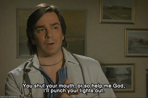 OK, a teraz wyobraźcie sobie, że to wszystko lipa. Nie tylko oryginalny serial, ale również wstawki dokumentalne. To wszystko część jednego, błyskotliwego serialu komediowego. Garth Marenghi, twórca Darkplace, a także występujący w serialu aktorzy również są postaciami fikcyjnymi, a ich komentarze dodają do produkcji dodatkową warstwę komedii. Powiem wprost – gdyby Darkplace był po prostu pastiszem taniego kina lat 80., spełniłby swoją funkcję wyśmienicie. Parodia jest bowiem idealna – począwszy od tanich efektów, przez fatalną grę aktorską i źle napisane dialogi, aż po koszmarne błędy montażowe. Mimo zaledwie sześciu odcinków obejrzymy tu powtarzające się motywy fabularne. Ba, dostaniemy nawet mój ulubiony chwyt z tanich filmów i seriali – wprowadzone naprędce objaśnienia nazbyt skomplikowanej fabuły na tle ujęć stockowych.