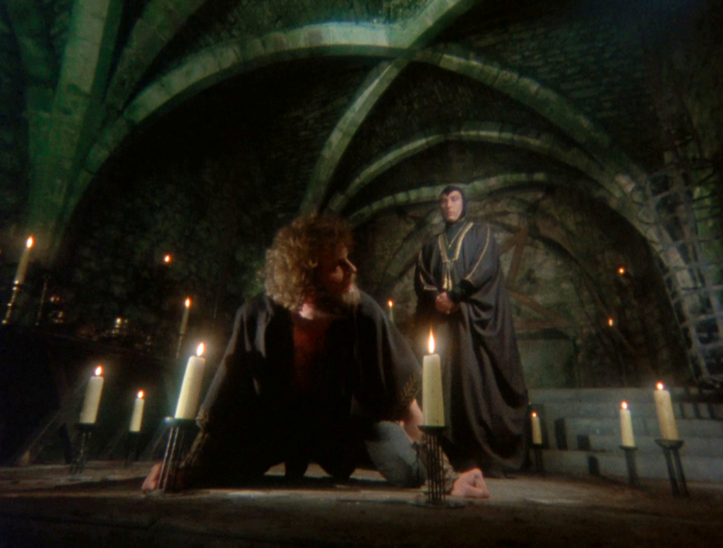 Odnoszę wrażenie, że Robin z Sherwood wykorzystuje elementy fantastyki i mitologii w sposób perfekcyjny, niedościgniony przez inne produkcje. Magia jest miękka, nie ma jasno określonych zasad, ale opiera się w dużej mierze na elementach chrześcijaństwa (czarna magia to służba Lucyferowi – i zaręczam, że odcinki z jego wyznawcami należą do najlepszych!) oraz wierzeń pogańskich (duchy/bogowie Wysp z ich magicznymi artefaktami, wizjami i czempionami). Jest to też system z magią „niską”. Nikt nie rzuca kul ognistych, zaklęcia służą raczej subtelnej kontroli nad innymi ludźmi, tudzież dokonywaniu rzeczy przekraczających możliwości normalnego człowieka. Do serialu, który próbuje przekonać nas do swojej „realistycznej” wizji średniowiecza, pasuje to fantastycznie. Bo niby czarują, ale widz nawet przez moment nie ma wrażenia, że za chwilę na scenę wkroczą orki albo smoki.