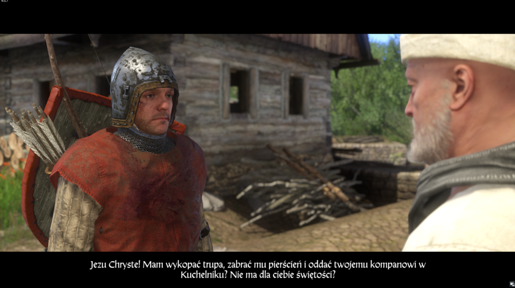 Jednak pomimo wielu pozytywów, KCD nie jest grą doskonałą. Po pierwsze: ma bugi. Ludzie blokujący się w drzwiach, zwierzyna spawnująca się pod naszym nosem, kluczowi NPC-e ginący w czasie rozgrywki… Tego naprawdę jest sporo. Z tego, co można przeczytać w internecie, granie w pierwszym miesiącu po premierze była męczarnią. Bugi i błędy w grze skutecznie odstraszały graczy od dłuższych sesji. Oczywiście wydawcy nie zostawili klientów na lodzie i w pierwszym tygodniu po premierze wyszła pierwsza aktualizacja usprawniająca grę. Czy się udało? Tak, ale nie do końca. Sztuczna inteligencja sojuszników nieraz pozostawiała mnie samego na polu walki przeciwko hordzie przeciwników, śmierć kluczowego NPC-a blokowała możliwość ogrywania dalszej fabuły, zdarzył się też przypadek, w którym to zegar służący do odmierzania snu, zamiast zakończyć swój bieg po siedmiu godzinach, zaczął kręcić się dosłownie w kółko, nie budząc mnie wcale.