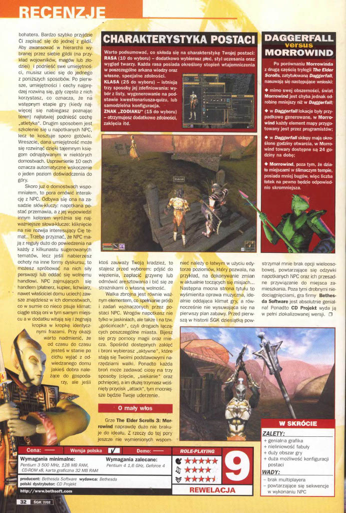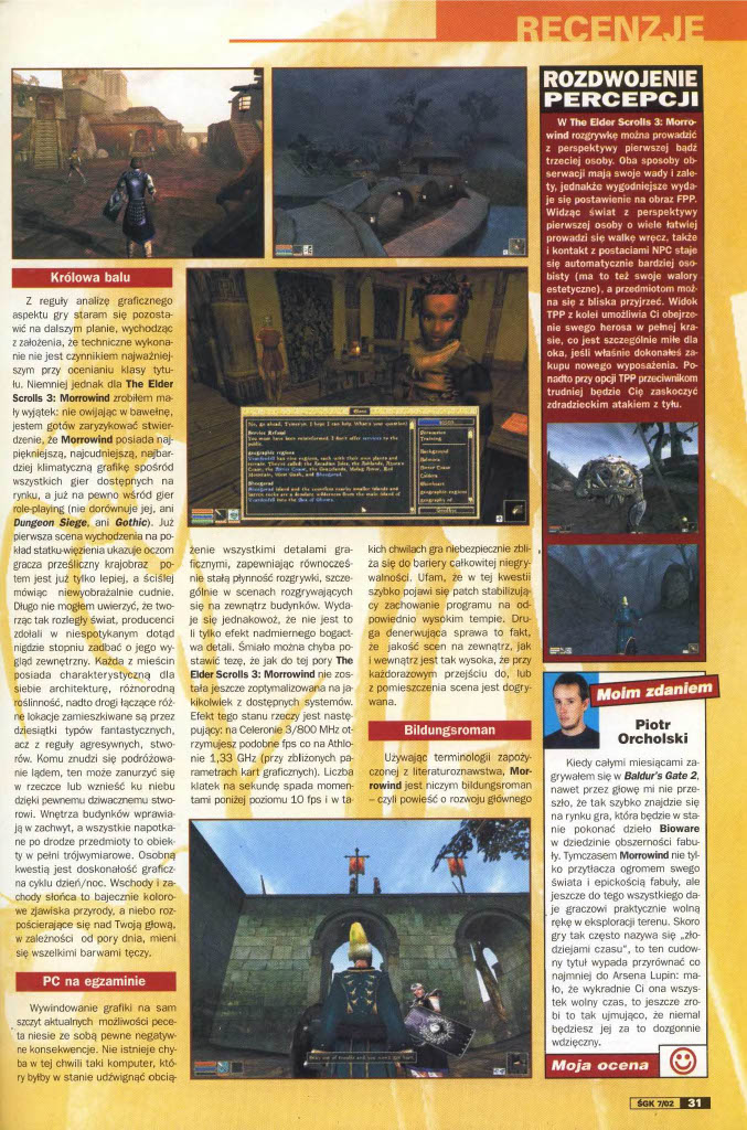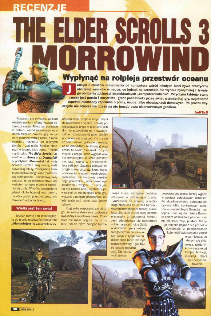 W lipcowym numerze ŚGK z 2002 roku mogliśmy przeczytać między innymi recenzję TES 3: Morrowind. Seria nadal mocna trzyma się na rynku – Skyrim wciąż żyje, a na zagranie w zremasterowanego Obliviona zdecydowało się całkiem sporo osób (dla wielu była to sentymentalna podróż).
