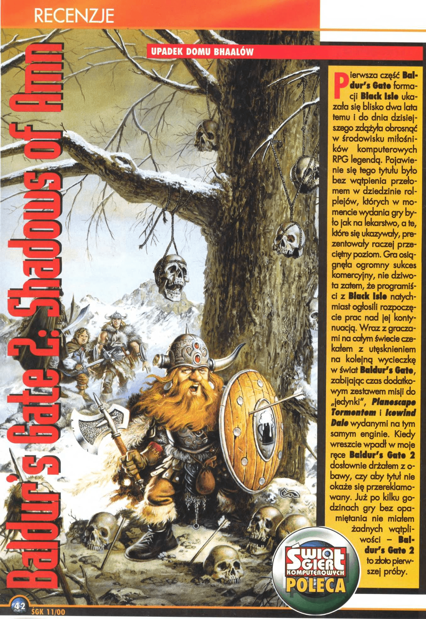 Tym razem w Kartce z kalendarza absolutny klasyk (od którego piszący te słowa się sromotnie się odbił, chociaż ma go w ładnym, pudełkowym wydaniu) Baldur’s Gate II: Shadows of Amn (ŚGK 11/2000). Gra miała swoją premierę 24 września 2000 roku. To były dobre czasy dla gier. W tym samym numerze ŚGK, w którym pojawiła się recenzja BG2, mogliśmy poczytać także o Aliens vs Predator Gold Edition, Blair Witch Volume 1: Rustin Parr, Carmageddon TDR 2000, Metal Gear Solid czy także o Midtown Madness 2.