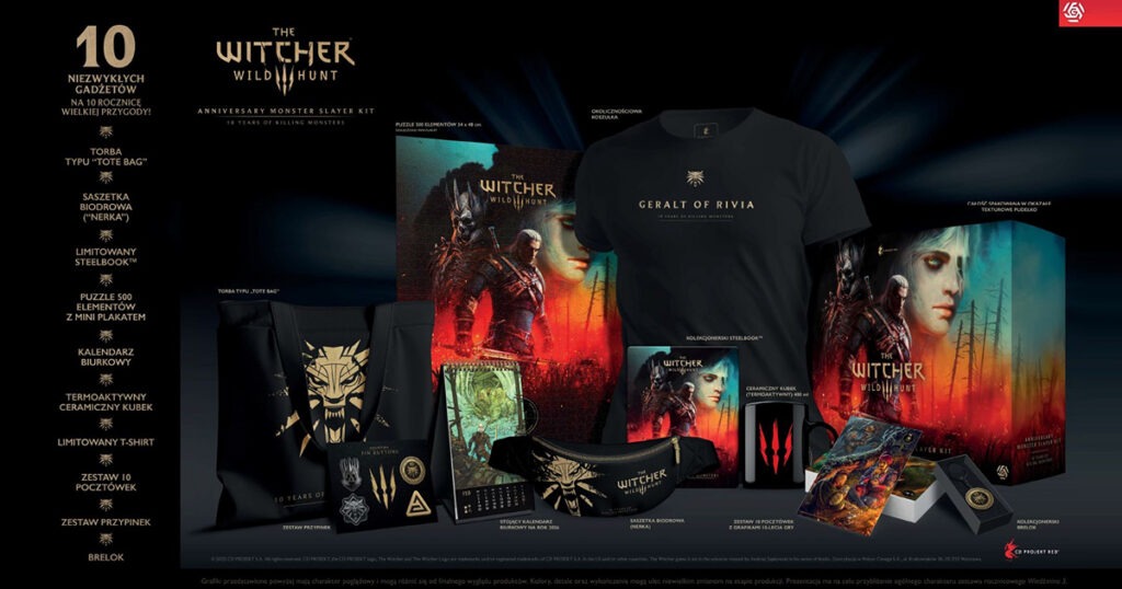 Zapowiedziano specjalne wydanie Wiedźmina 3, a także zestawy gadżetów z okazji 10. rocznicy wydania gry. Gra w tej wersji wraz z gadżetami trafi do sprzedaży 14 listopada, jednakże już można składać zamówienia przedpremierowe. Do sprzedaży trafią trzy zestawy (kalendarz, zestaw puzzli – 5 różnych wzorów po 500 elementów każdy oraz specjalne wydanie gry), ale wartym zainteresowania jest najbogatszy pakiet – Monster Slayer Kit, za który przyjdzie zapłacić 599 zł. W jego skład wchodzi: