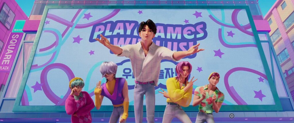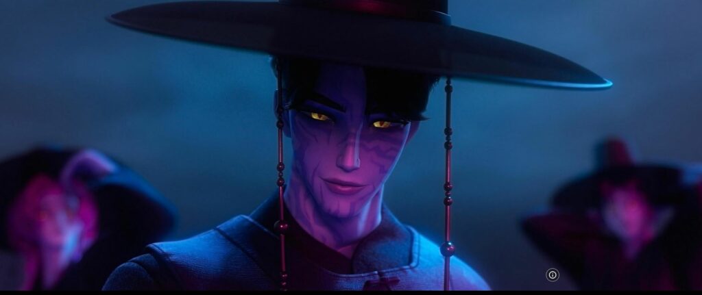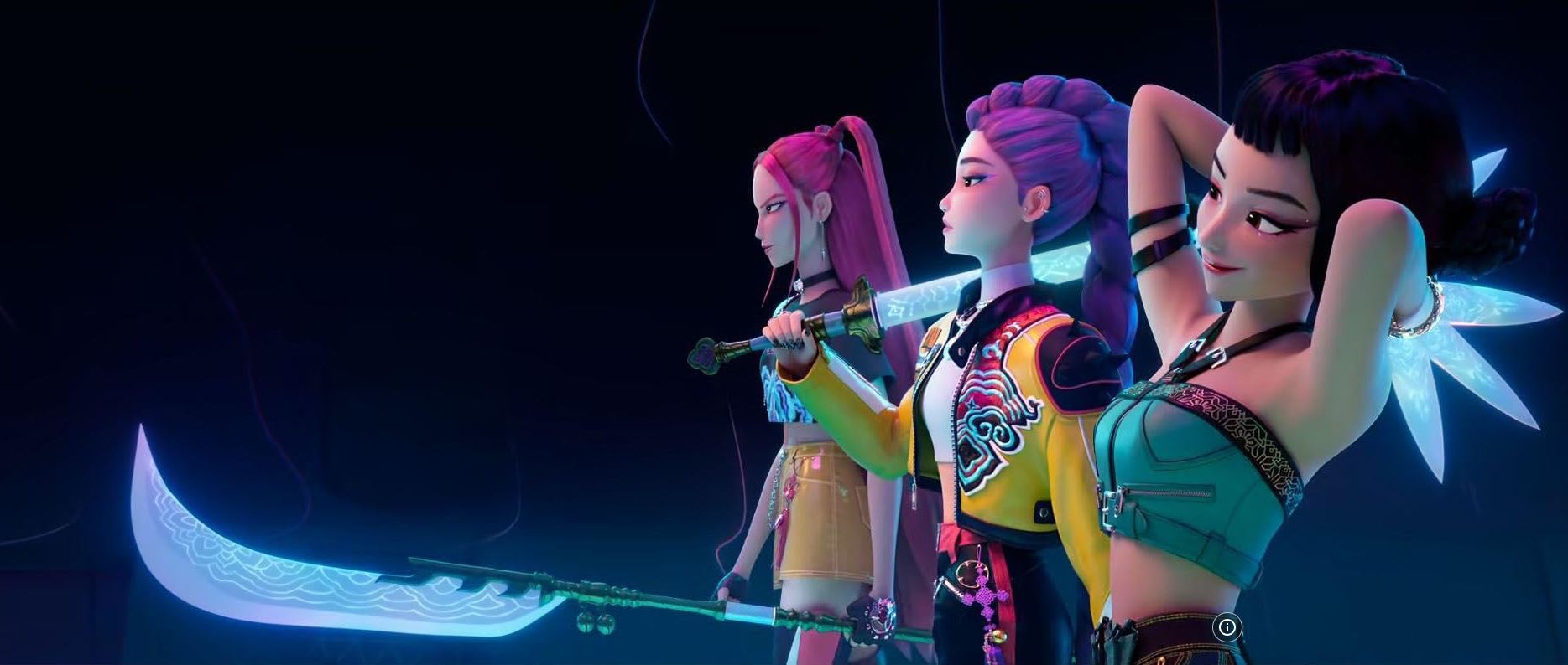 No i zostaje nam muzyka, czyli kolejna mocna strona filmu. Jest to w zasadzie musical, ale piosenki są tak wkomponowane w całość, że nie mamy poczucia tej musicalowej sztuczności. Muzyka jest tu zresztą motywem przewodnim, więc wszystko się ładnie składa. Czujemy się bardziej jakbyśmy oglądali kolejne, pełnoprawne teledyski, niż słuchali piosenek w tym bardziej klasycznym, disneyowskim wydaniu. Same utwory są świetnie, wpadające w ucho i ciekawe o tyle, że w angielski tekst wpleciono koreańskie słowa, zupełnie jednak nie przeszkadza to w ich odbiorze. Zaczynamy od dynamicznego „How it’s done”, który jednocześnie przybliża nam łowczynie – to, kim są i co robią. Największym hitem i wizytówką filmu jest „Golden”, którego motyw będzie się często przewijać w trakcie całego filmu. To oczywiście nie wszystko, jest tego więcej, a i chłopaki z Saja Boys też mają co nieco do zaprezentowania. Krótko mówiąc, nie dziwię się, że te kawałki okupują szczyty list przebojów, a liczba ich wyświetleń na youtube oscyluje w granicach od 200 do ponad 400 milionów.