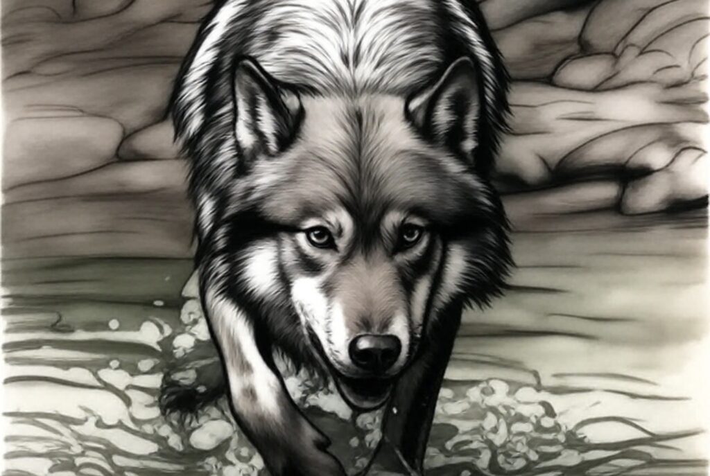 Nagle słychać odgłosy ludzi i koni, którzy zbliżyli się niepostrzeżenie, jadąc pod wiatr. Wataha ucieka.