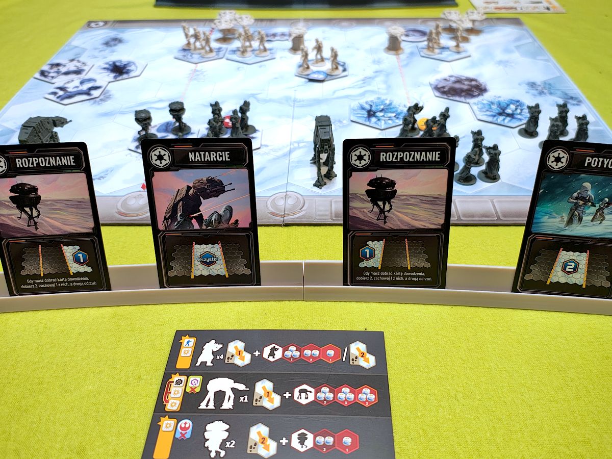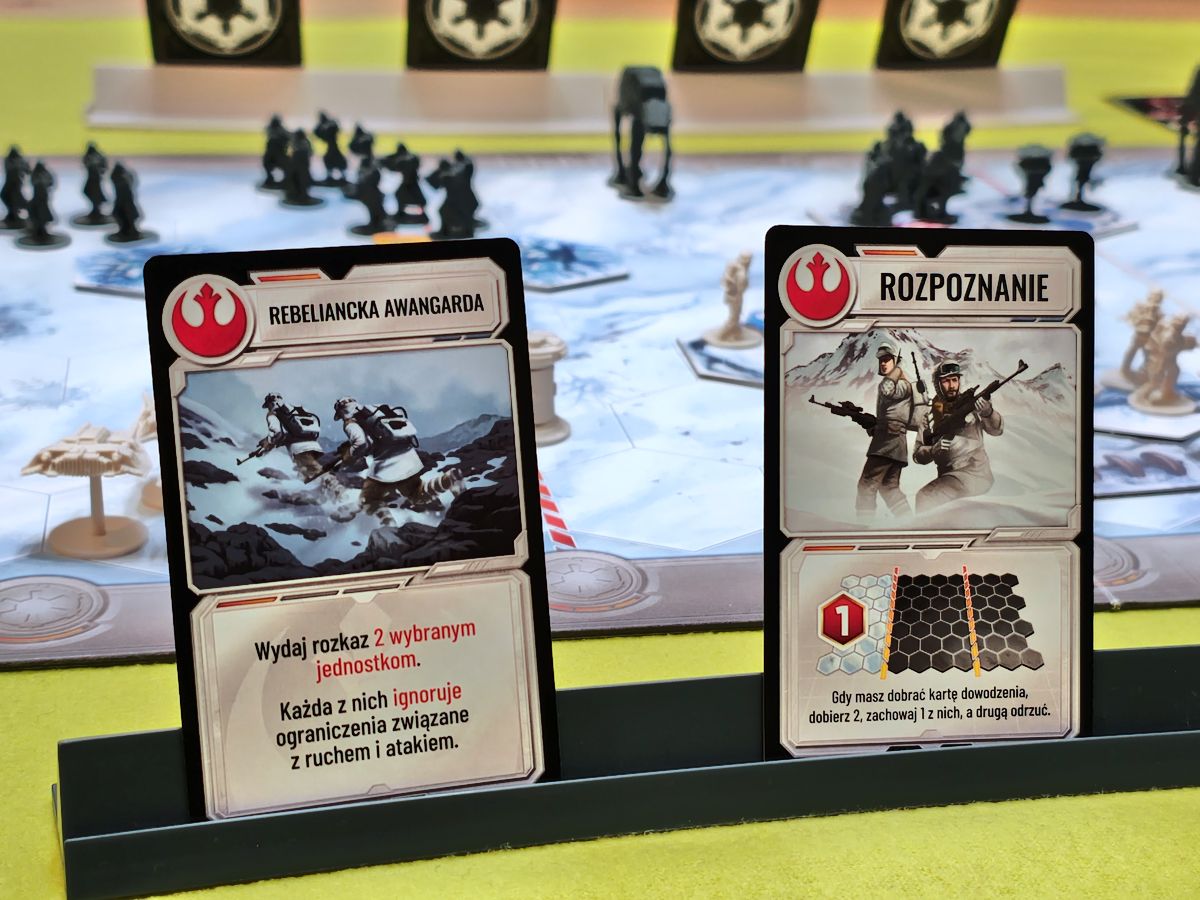 Jeśli ktoś grał wcześniej w Memoir ’44, będzie mu bardzo łatwo się tu odnaleźć, bo to w zasadzie ten sam system tylko w gwiezdnowojennych szatach. Gra jest SZYBKA. Zwykle do wyboru mamy jedną z czterech kart, a następnie wydajemy rozkazy góra trzem jednostkom (tylko okazjonalnie zdarza się więcej). Jest taktycznie i sytuacyjnie – żaden plan nie wytrzyma pierwszego kontaktu z wrogiem, któremu poszczęści się w rzutach. Nie zawsze też będziemy mieć możliwość wydać rozkazy tam, gdzie tego najbardziej potrzebujemy, jak to na prawdziwej wojnie. Nie oznacza to bynajmniej, że decyzje nie mają znaczenia, wprost przeciwnie. Sprytnie wybierając cele, maksymalizując korzyści z kart i korzystając z zasad poszczególnych scenariuszy można wybrnąć nawet z beznadziejnych sytuacji, a rozgrywki są zazwyczaj niezwykle wyrównane i emocjonujące.