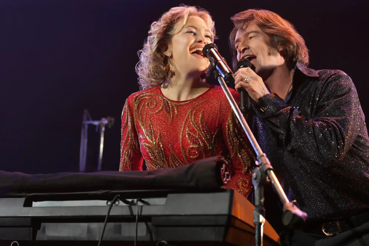 Szkoda tylko, że poziom aktorstwa zdecydowanie wyrasta ponad to, co był w stanie zrobić z całym materiałem twórca filmu. Craig Brewer jako reżyser, scenarzysta i producent nie dał rady nadać swojemu dziełu gatunkowej ciężkości i zrealizować czegoś wyrastającego ponad dość szablonowy film muzyczny. Cały dramatyzm dostał „za darmo”, prosto z życiorysu bohaterów, który przedstawił poprawnie, nic ponad to. Do tego lubuje się w tanich melodramatycznych chwytach. W pierwszej części filmu serwuje nam prawdziwą gonitwę scen, chcąc pokazać i sceniczne show, i relację pomiędzy bohaterami, i życiowy dramat. W efekcie wszystko zdaje się dziać bardzo szybko – poznanie się, zakochanie, ślub, kryzys. Tutaj obciążeniem staje się to, że film opowiada prawdziwą historię, która musi zmieścić w dwugodzinnym materiale. Słabo wyeksponowany jest drugi plan, na którym tylko w przelocie możemy zobaczyć ten cały amerykański muzyczny fenomen – świat pełen barów z muzyką na żywo, lokalnych kapel, podrzędnych sal koncertowych, sprytnych menadżerów i muzyków naiwnie marzących o wielkiej sławie oraz tych, którzy już o niczym nie marzą, tylko próbują związać koniec z końcem. Gdzieś tam przemyka dawno niewidziany na dużym ekranie Jim Belushi, nie mający kompletnie nic do zagrania. Zresztą poza dwójką głównych aktorów tu nikt nie ma wiele do zagrania. Ten film na pewno mógłby być lepszy. Chociaż, z drugiej strony, może jest zupełnie wystarczający dla przedstawienia historii dwojga skromnych marzycieli w festyniarskich kostiumach? Może nigdy nie stali się wielcy, ale chociaż przez moment stanęli w cieniu wielkich, wspierając się nawzajem w najtrudniejszych chwilach. Poza tym wspólne występy Jackmana i Hudson dodają jednak temu prostemu filmowi magii.