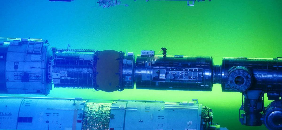Cały film jest niepozorny z wyglądu, ale polecam pogrzebać w serwisie Youtube w poszukiwaniu materiałów zza kulis produkcji. Statek został zaprojektowany z dbałością o każdy detal, a plan zdjęciowy składał się z osobnych modułów dokładnie odpowiadających formą i wielkością temu, co wynikało z ogólnego projektu. Wszystko, co widzimy na ekranie, istniało fizycznie, a Ryan Gosling faktycznie poruszał się wśród ekranów, guzików, kontrolek, skafandrów i działających włazów. Ba, segmenty były obracane, żeby dało się pokazać różne dynamiczne akcje oraz trzy różne formy grawitacji – tę pochodzącą od stałego przyspieszania, tę po przejściu statku w tryb centryfugi (Nolan by przy okazji zaserwował dziesięć minut ekspozycji, a Miller i Lord po prostu pokazali majestatyczną sekwencję rozkładania się laboratorium na linach), a także stan braku grawitacji. Pod względem designu całość sprawia wrażenie mieszanki surowego stylu autentycznych pojazdów kosmicznych z pewną dozą futuryzmu. Nie ma tu miejsca na fikuśne animacje, lewitujące ekrany albo inne wodotryski. Hail Mary to statek, który mógłby powstać naprawdę i mnie te przyziemność i realizm całkowicie kupiły. A jeśli dodamy jeszcze, że w trakcie zdjęć nie korzystano w ogóle z green screenów, to ręce same składają się do oklasków. Film kosztował grube miliony, ale twórcy naprawdę zapracowali na swoje gaże.
