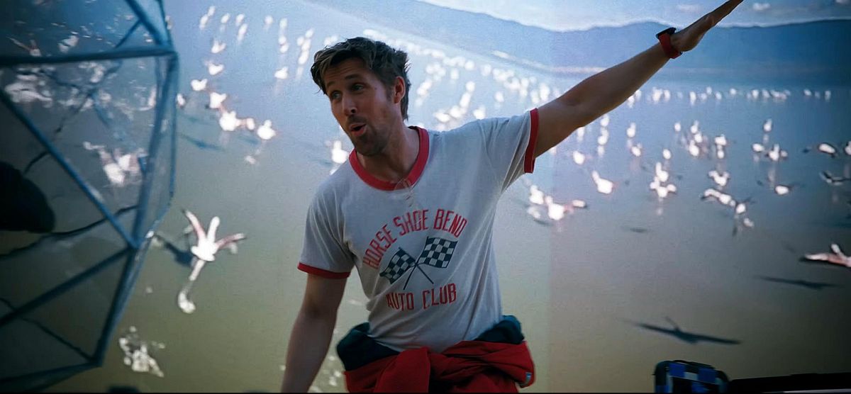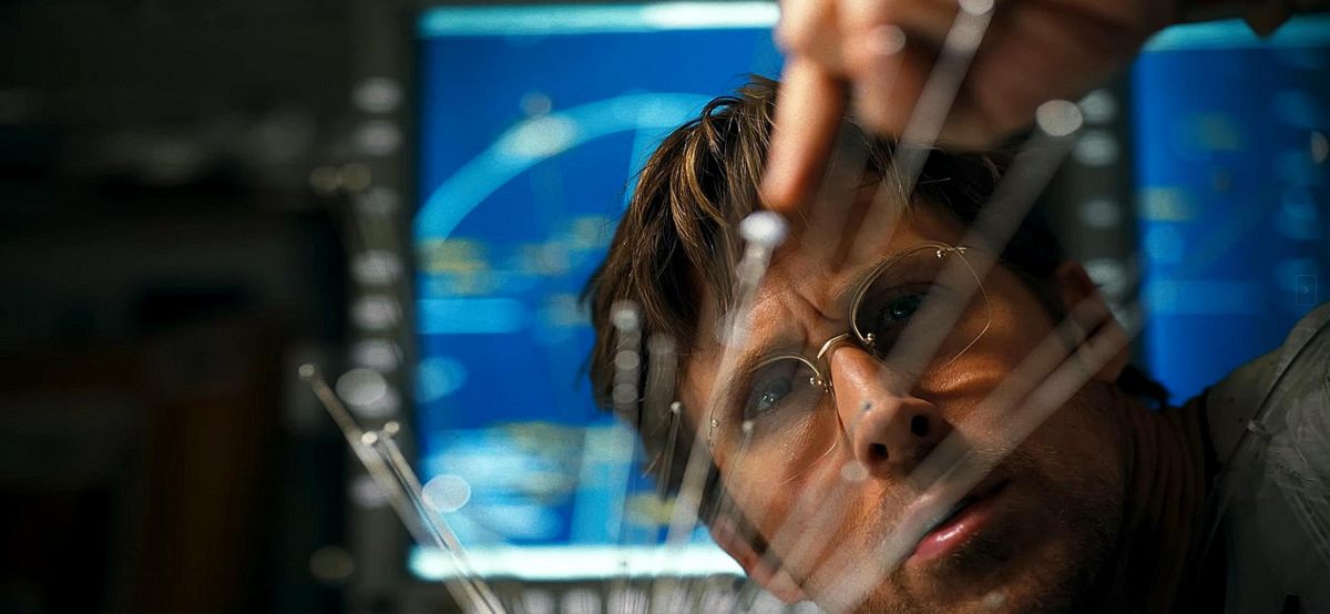 Głównym bohaterem historii jest Ryland Grace, który budzi się ze snu kriogenicznego na statku kosmicznym dość daleko od Ziemi. Prawie nic nie pamięta, nie wie nic o celu swojej wycieczki ani co się stało z resztą załogi. Z czasem, podobnie jak w powieści, skrawki wspomnień będą wracać, dzięki czemu razem z Rylandem dowiemy się, że jest on ostatnią nadzieją ludzkości. Coś w szybkim tempie “gasi” nasze Słońce oraz pobliskie gwiazdy. Wszystkie poza jedną, do której właśnie zbliża się statek Hail Mary z dzielnym naukowcem na pokładzie. Proces odzyskiwania pamięci postępuje stopniowo, a tło historyczne stanowią retrospekcje, które Grace odkodowuje w swojej głowie. Film jest podzielony mniej więcej na dwie podobne części, z których jedna dzieje się w kosmosie, a druga na Ziemi przed wylotem. Obie linie czasowe przeplatają się ze sobą i udało się to zrobić bardzo sprawnie, bez popadania w nachalną ekspozycję przez gadające głowy. W książce było to zrealizowane podobnie, ale retrospekcje częściej były wyzwalane na skutek konkretnych wydarzeń na pokładzie Hail Mary. W filmie trochę to zmieniono, co według mnie pozwoliło uzyskać większą płynność i równowagę między dwiema liniami czasowymi.